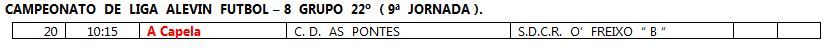 HORARIOS DE FUTBOL CAMPO XORNADA DO 20 DE FEBREIRO Aqui tedes a xornada desta fin de semana para os nosos equipos de Futbol Campo. Seguir leyendo «HORARIOS DE FUTBOL CAMPO XORNADA DO 20 DE FEBREIRO» →