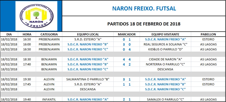 RESULTADOS XORNADA DE LIGA DO 25 DE FEBREIRO. FUTSAL 2017/2018