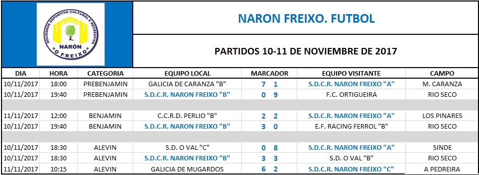 RESULTADOS XORNADA DE LIGA. 10-11 DE NOVEMBRO. FUTBOL 2017/2018