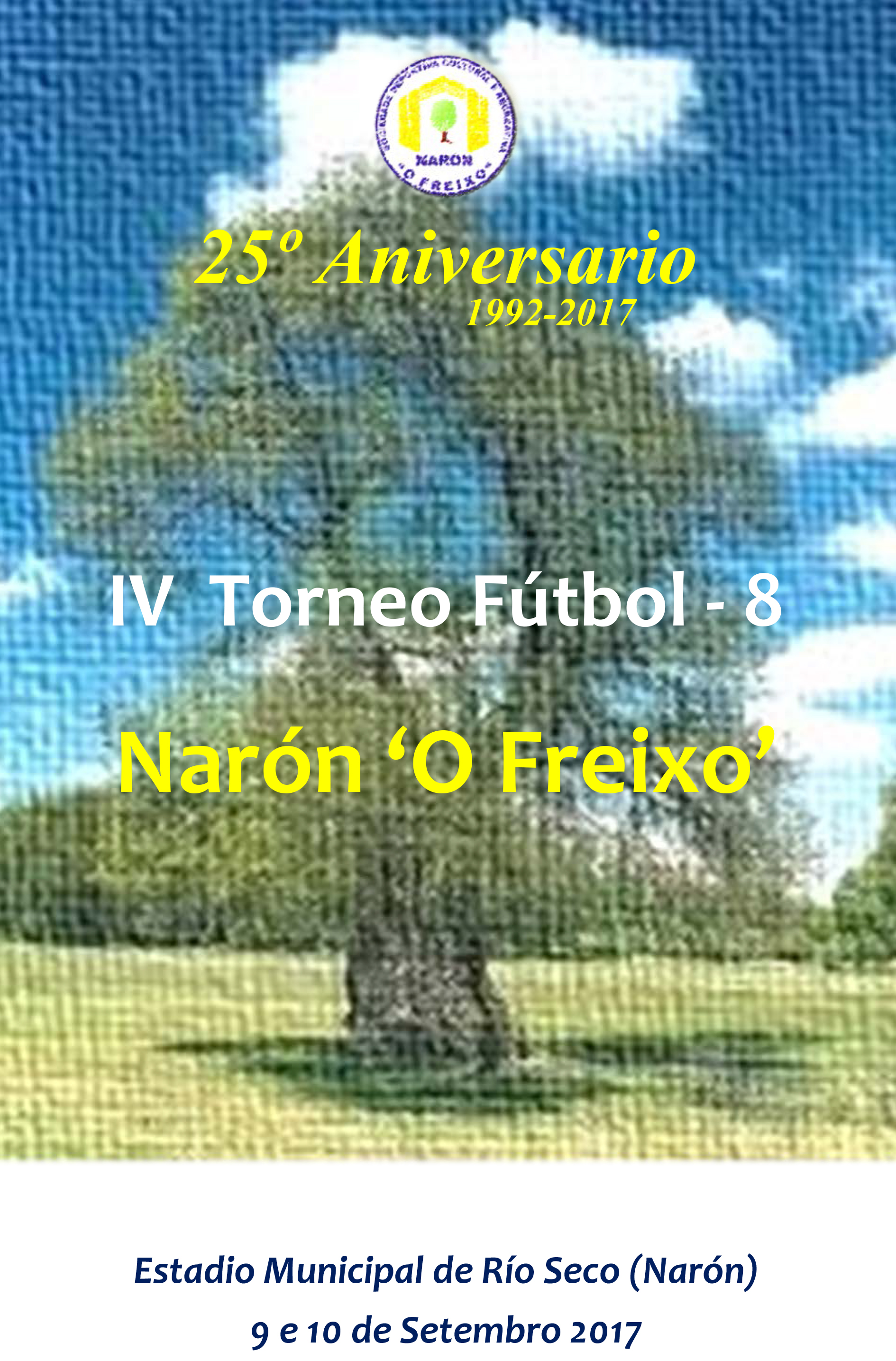 A data elixida para a celebración do IV TORNEO DE FUTBOL NARÓN FREIXO, será o fin de semana do 16 e 17 de setembro, onde o sábado disputaranse os partidos de categoría Alevín e o domingo, terá lugar a categoría Benjamín.