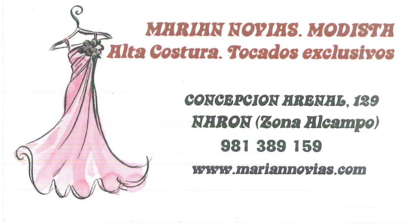 A empresa, MARIAN NOVIAS, ubicada en Concepción Arenal, 129 – NARÓN (ZONA ALCAMPO), ofrecenos as seguintes promocións: