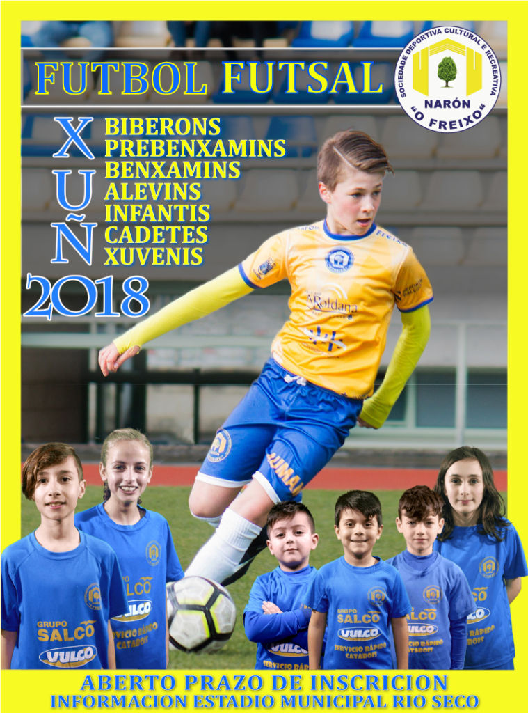 Unha tempada máis, a S.D.C.R. NARÓN FREIXO, comeza a recibir as preinscrición para a vindeira tempada. Recordarvos que o importe dunha actividade (fútbol o fútbol sala) é de 200€ repartidos en 10 cuotas mensuais, e por ambas actividades o importe son 300 €.