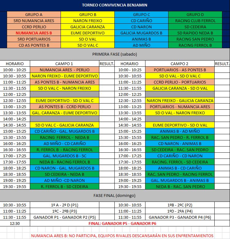 CONVIVENCIA BENXAMIN 13 E 14 DE MAIO HORARIOS E RESULTADOS SEMANAIS E ata A Barqueira desplazarase o noso Benxamin A para disputar o Torneo de Convivencia da sua Categoria.