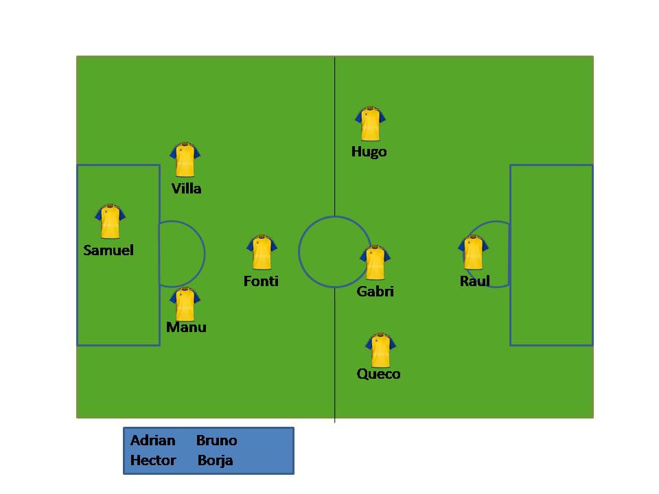 Era cuestión de tempo que fosen caendo os goles e unha grande xogada pola banda dereita entre Queco e Fonti que consigue chegar á liña de fondo e seu centro ao punto de penalti é aproveitado por Gabri, que co interior do pé esquerdo, empurra o balón ao fondo da rede. Un minuto despois, é o propio Queco o que rouba un balón no bordo da área, recorta cara a súa perna esquerda e seu disparo, pese a tocalo o gardameta visitante, acaba entrando por alto e poñendo o tres a cero no marcador. De aí ata o final do primeiro tempo, os locais conseguían aumentar a vantaxe con dous novos goles que chegarían por medio de Villar e Hugo, deixando o marcador en cinco a cero no descanso.