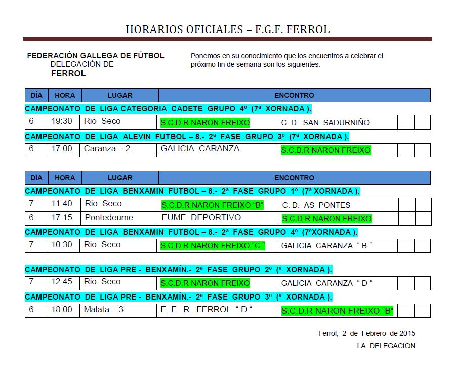 HORARIOS DO 6 E 7 DE FEBREIRO DE FUTBOL 8 E FUTBOL 11 Noticias Fútbol 8 Aqui tedes o calendarios dos encontros dos nosos equipos de Futbol 8 e Futbol 11 desta fin de semana.