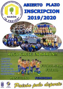 Aberto Prazo de Inscrición tempada 2019/2020 Algo Crece en Narón!!! No últimos cinco anos, somos a escola que máis creceu no noso Concello. Con equipos