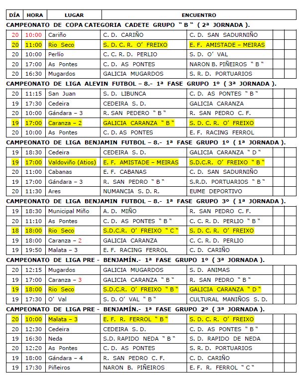 PARTIDOS DA FIN DE SEMANA Club Esta xornada ofrecenos o primeiro enfrontamento fraticida da Tempada , seran os Benxamins en Río Seco o xoves 18 as 18:00.