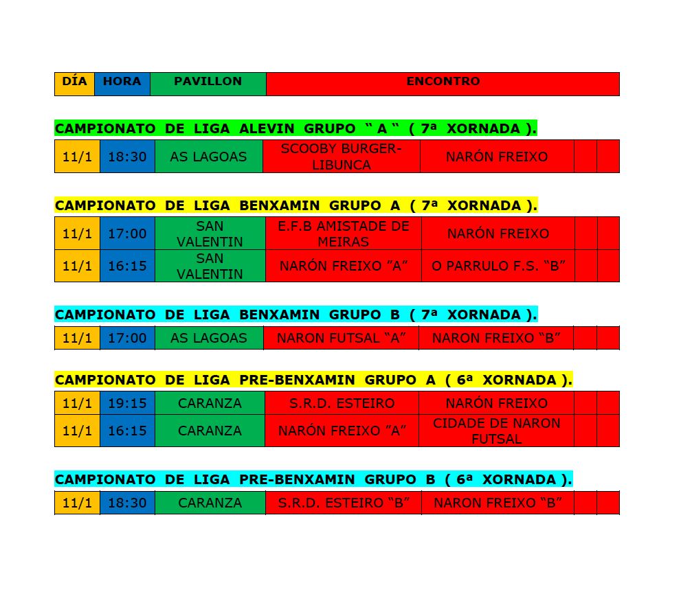 Primeira xornada de ano de FUTSAL o 11 de xaneiro Fútbol Sala Xa esta rematando o Nadal, e polo tanto xa non falta nada para que o día 11 de xaneiro teñamos a primeira xornada de FUTSAL deste ano 2015.