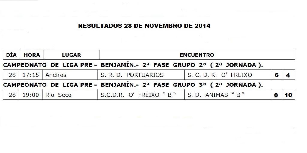 Resultados de FUTBOL 8 do 28 de novembro Noticias Fútbol 8 Esen foron os resultados dos encontros disputados polos nosos equipos nesta fin de semana.