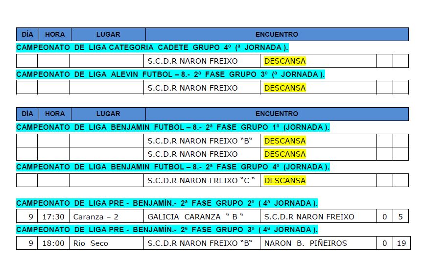 Resultados de FUTBOL 8 do 9 de xaneiro.
