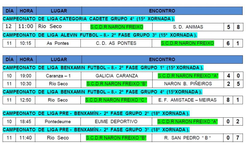 E aqui tedes os resultados de Fútbol campo dos equipos da nosa sociedade.