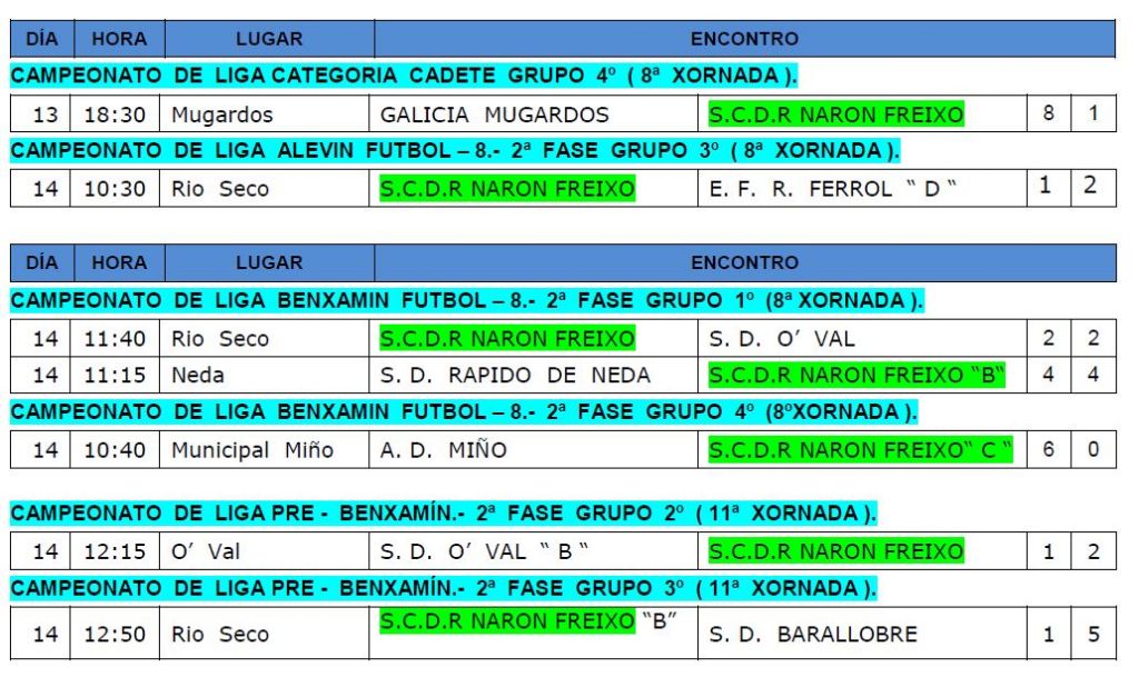 Resultados de FUTBOL 8 e 11 do 13 e 14 de febreiro de 2015 Noticias Fútbol 8 Uns partidos gananse e outros non, pero sempre temos que aprender algo no campo, e aqui tedes os nosos resultados destes dias de Entroido.