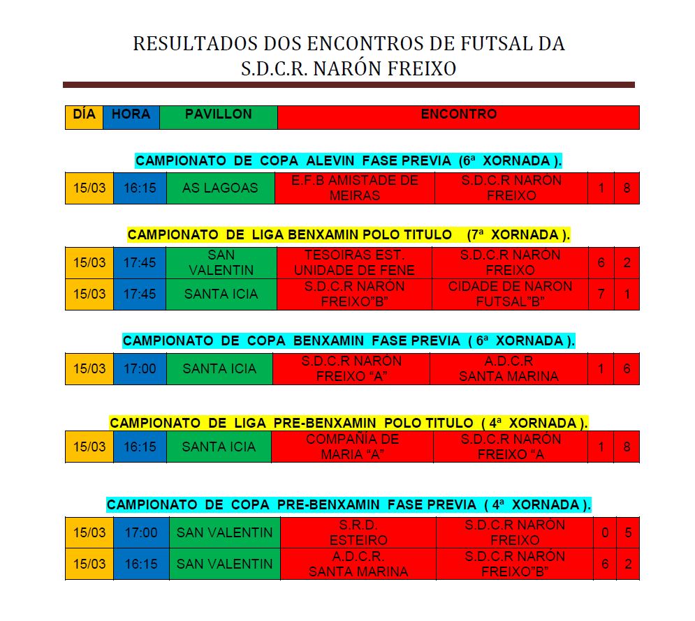 Resultados de FUTSAL do 15 de marzo Fútbol Sala Aqui estan os resultados dos partidos desta tarde dos nosos equipos de FUTSAL.