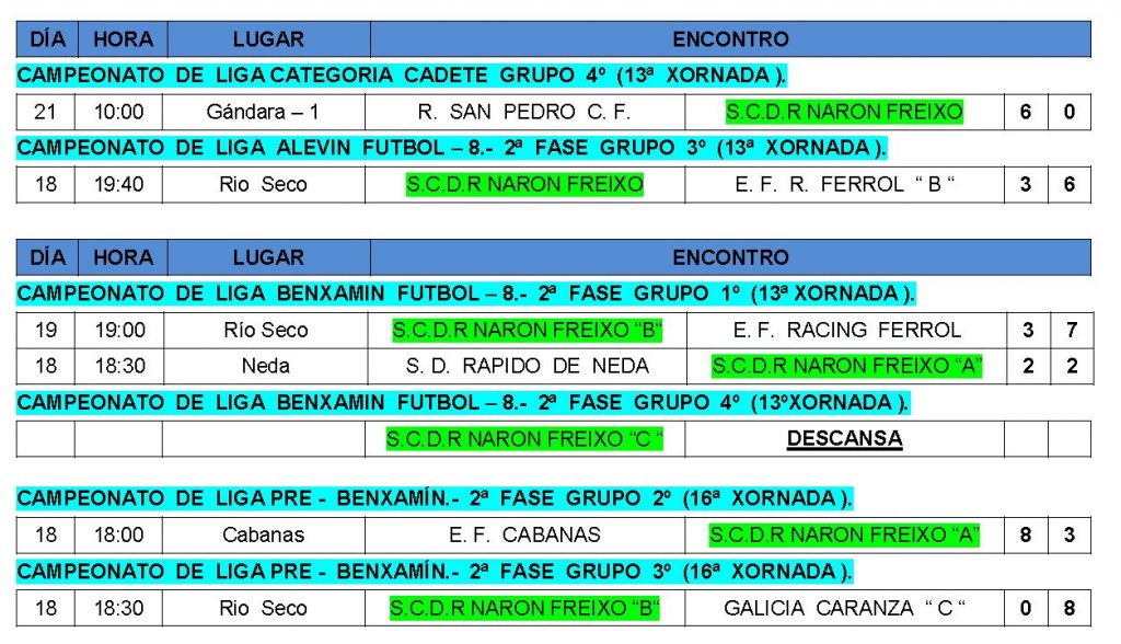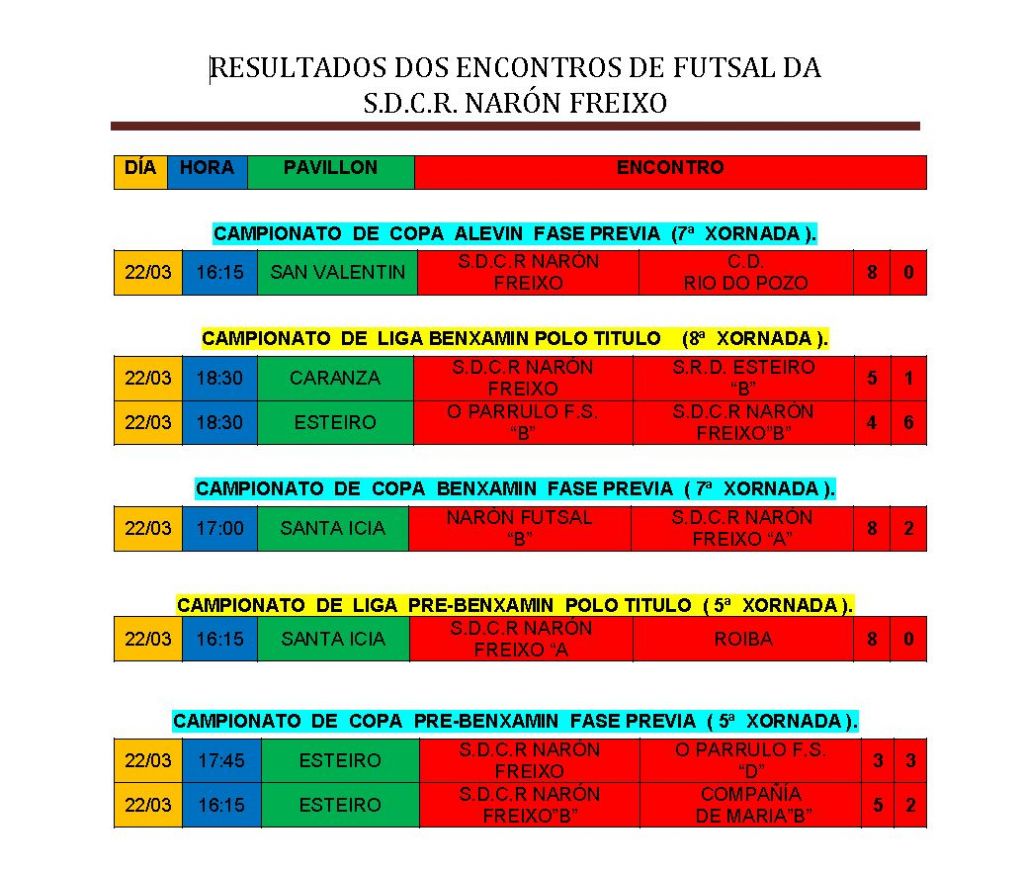 RESULTADOS DESTA FIN DE SEMANA Noticias Fútbol 8 Aqui estan todos os resultados dos noso equipos, nesta longa fin de semana que comezou o mercores e rematou hoxe domingo. RESULTADOS DE FUTBOL 8 E FUTBOL 11 RESULTADOS DE FUTSAL