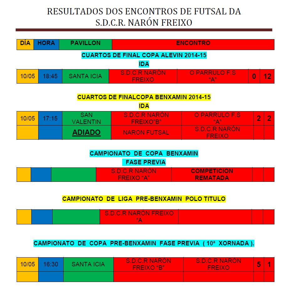 RESULTADOS DO 10 DE MAIO DE FUTSAL Fútbol Sala Aqui tedes os resultados da última xornada disputada polos equipos de futsal do Narón Freixo